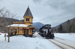 CSRX 1751 at Crawford's From 2/28/2026, here was the Conway Scenic Railroad's Winter Mountaineer heading west through Crawford Station to Fabyan Station with the GP9 leading long hood forward.