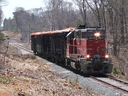 Northern Tree Service on the Cape Main line After waiting for replacement parts to repair, the Northern Tree cutter is back at work in Sandwich MA. Currently approaching the Old County Rd overhead bridge at MP 66.95 with the rest of the crew working towards the West Barnstable RR Station at MP 69.40