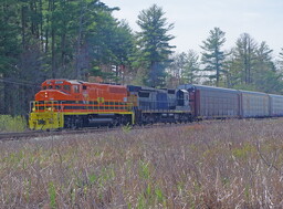 Westbound local After stopping at the engine holdpoint for Keolis 259 to come up to Haverhill station and then go put away at Bradford facility CSX L080-28 got the signal put in at CPF-HA and continued west to Lawrence yard with CSXT 8833-MEC 518 & 20 cars. They returned east later on with 518-8833 & a small train.