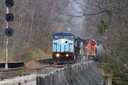 Westbound at the tunnel EDMO with #7898 in the lead throttles up about to cross the Deerfield river bridge and then head into the tunnel with a pretty long train in tow