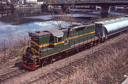 | Green-Mountain GP9 1850 leaving Bellows Falls VT.jpg Photographed May 4, 1995. Added to archive December 6, 2025 by Brian Gilleran.