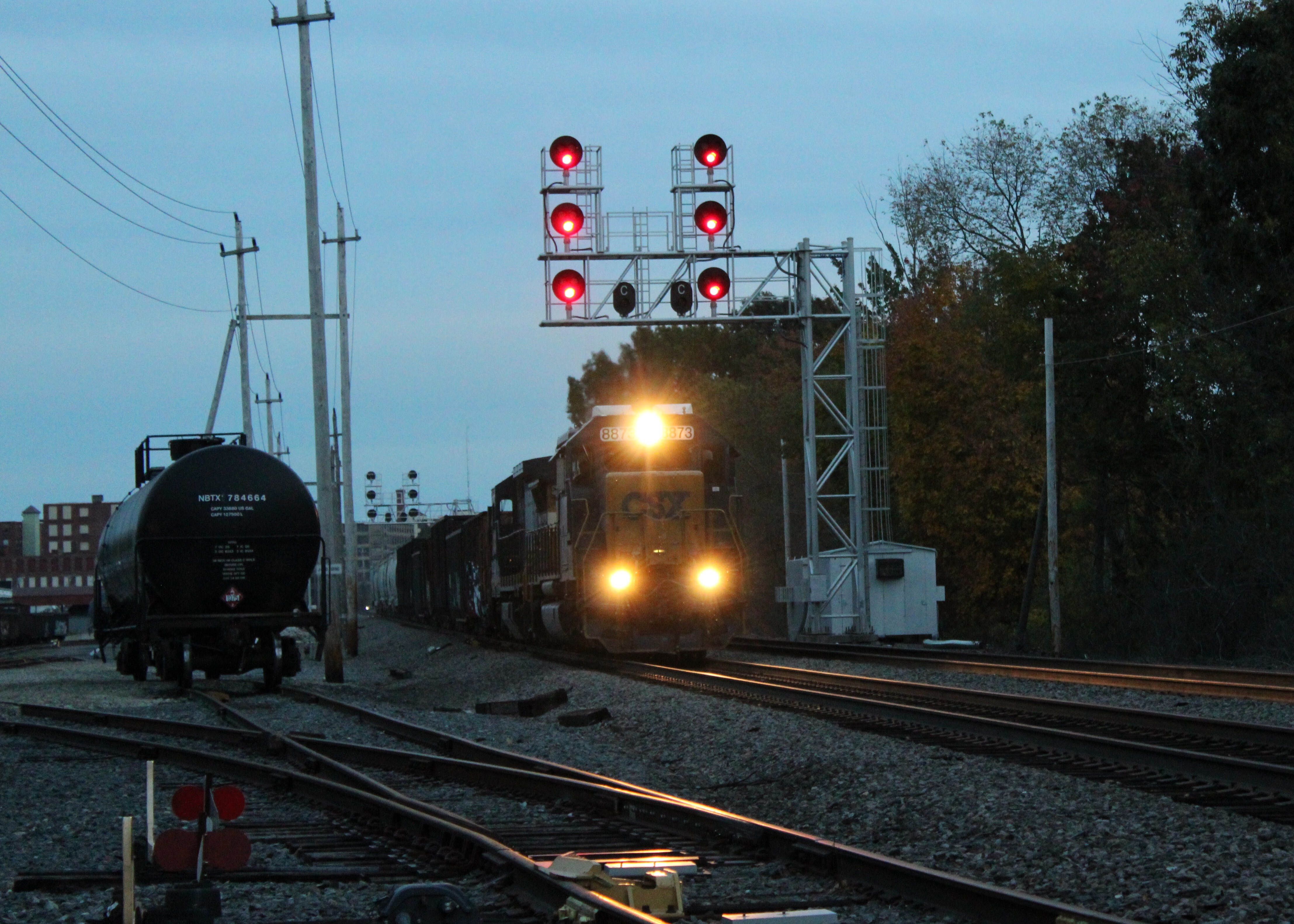 Rolling thru CPF-HA in Haverhill MA with CSXT 8873 MEC 5966 and 15 cars (7 loads and 8 empties) around sunset.