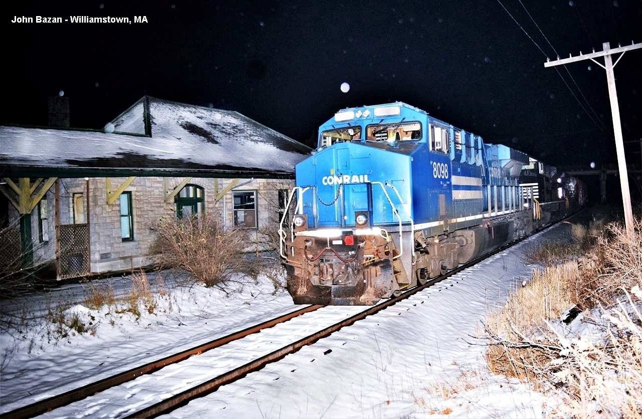 NS 8098 At Williamstown, MANS unit No. 8098 - the Conrail heritage unit- is seen leading Pan Am Southern train 16R past the former train station at Williamstown, MA during the early morning hours on Saturday, Nov. 17, 2018. I was planning on following the train all the way to East Deerfield, MA, but the train ended up getting tied down at North Adams, MA. It was still parked there today (Sunday) according to last reports.