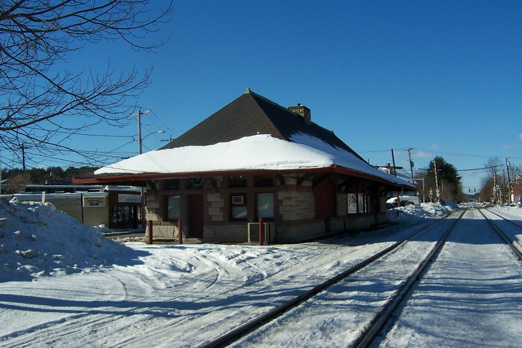 Ashland, MA Built in 1887 this station rests on the B&A line about 3 miles from Framingham. Photographed by Bob English, January 12, 2003. Added to the photo archive by Bob English, April 7, 2021. Railroad: Boston & Albany. » Contact the person who posted this photograph.