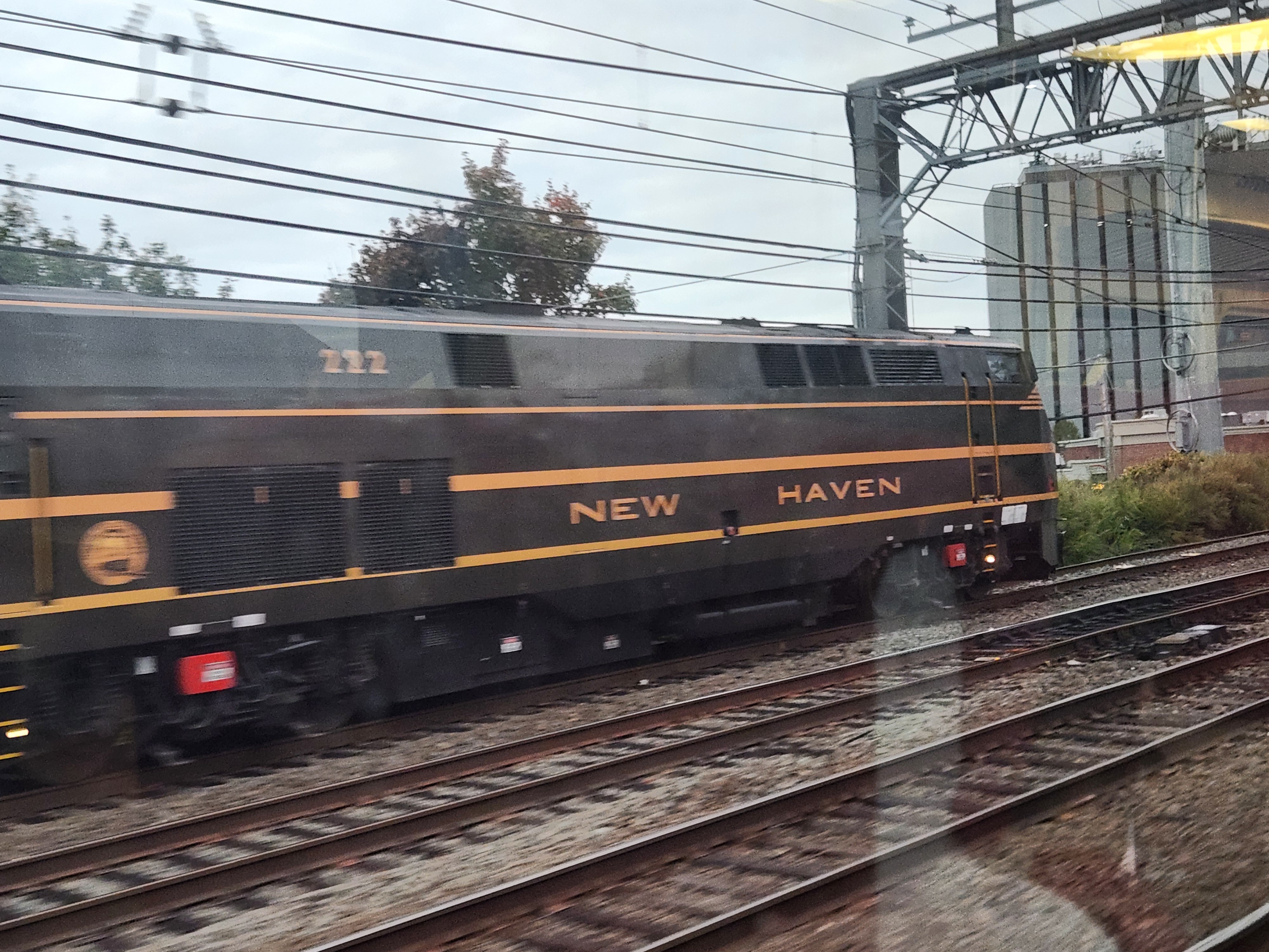 New Haven HeritageNYNH&H heritage wrap on P32AC-DM #222, South Norwalk station, CT