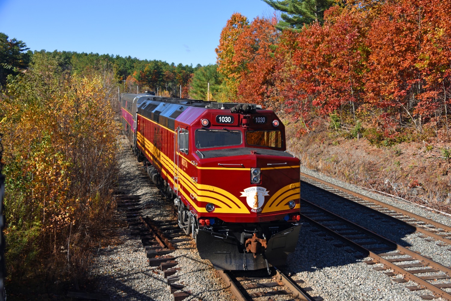 Can't get enough of the B&M heritage unit as it trails the Fall Foliage Special heading for the layover facility in Westminster.
