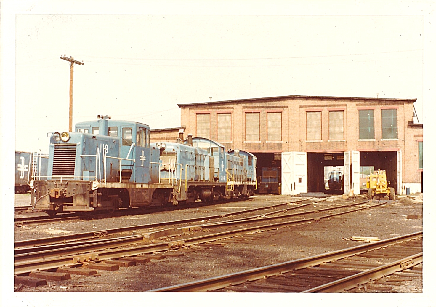 East Deerfield, MA Time to retire. BM 119 GE 44Ton b/d 6/48, BM 1204 NW-2 b/d 7/42, BM 12?? S-4 b/d 8/50 in back of East Deerfield Diesel Shop with stacks capped. Photographed by Bruce Nelson, July, 1978. Added to the photo archive by Bruce Nelson, November 1, 2025. Railroad: Boston & Maine. » Contact the person who posted this photograph.