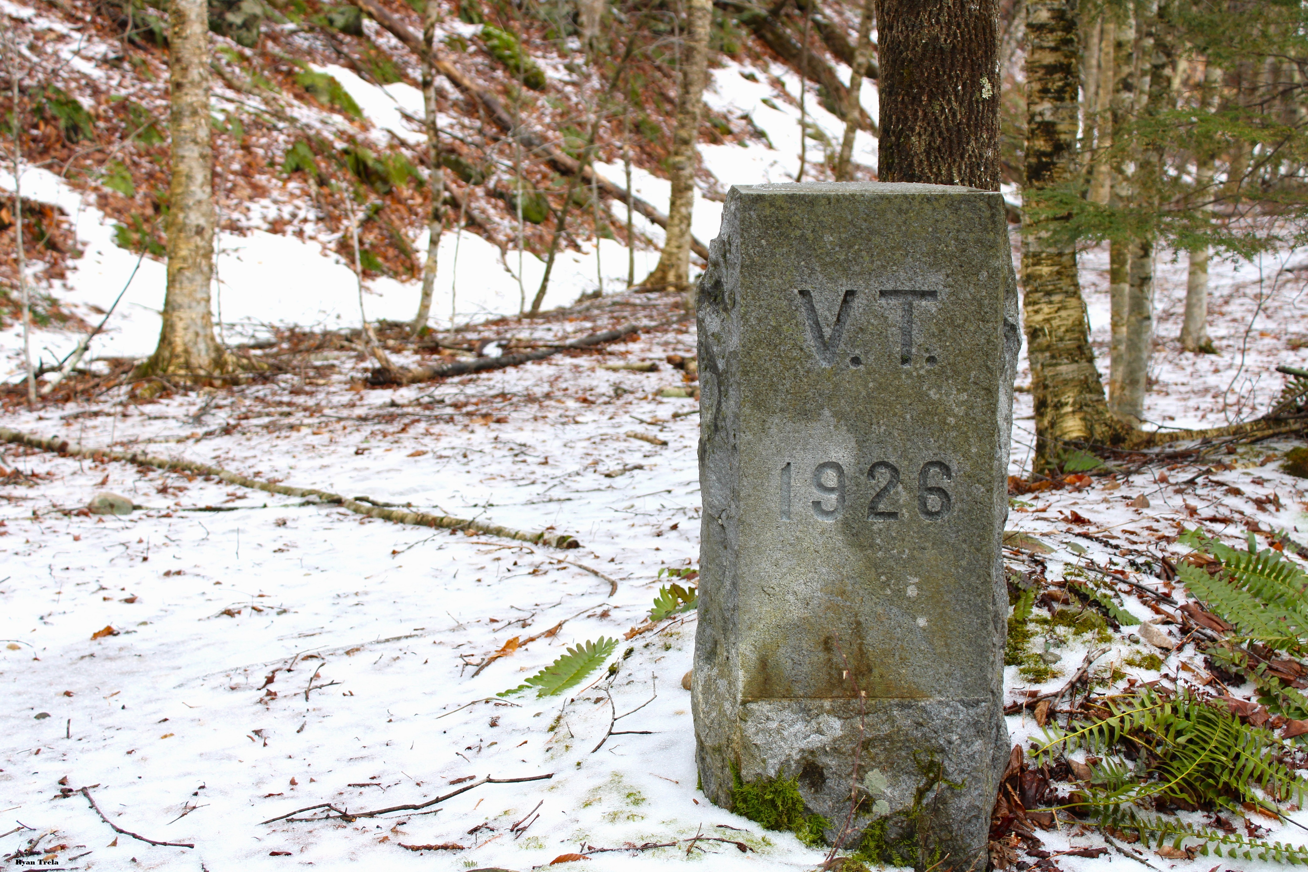 VT state markerVermont/MA state boundary marker on the side of HT&W railroad