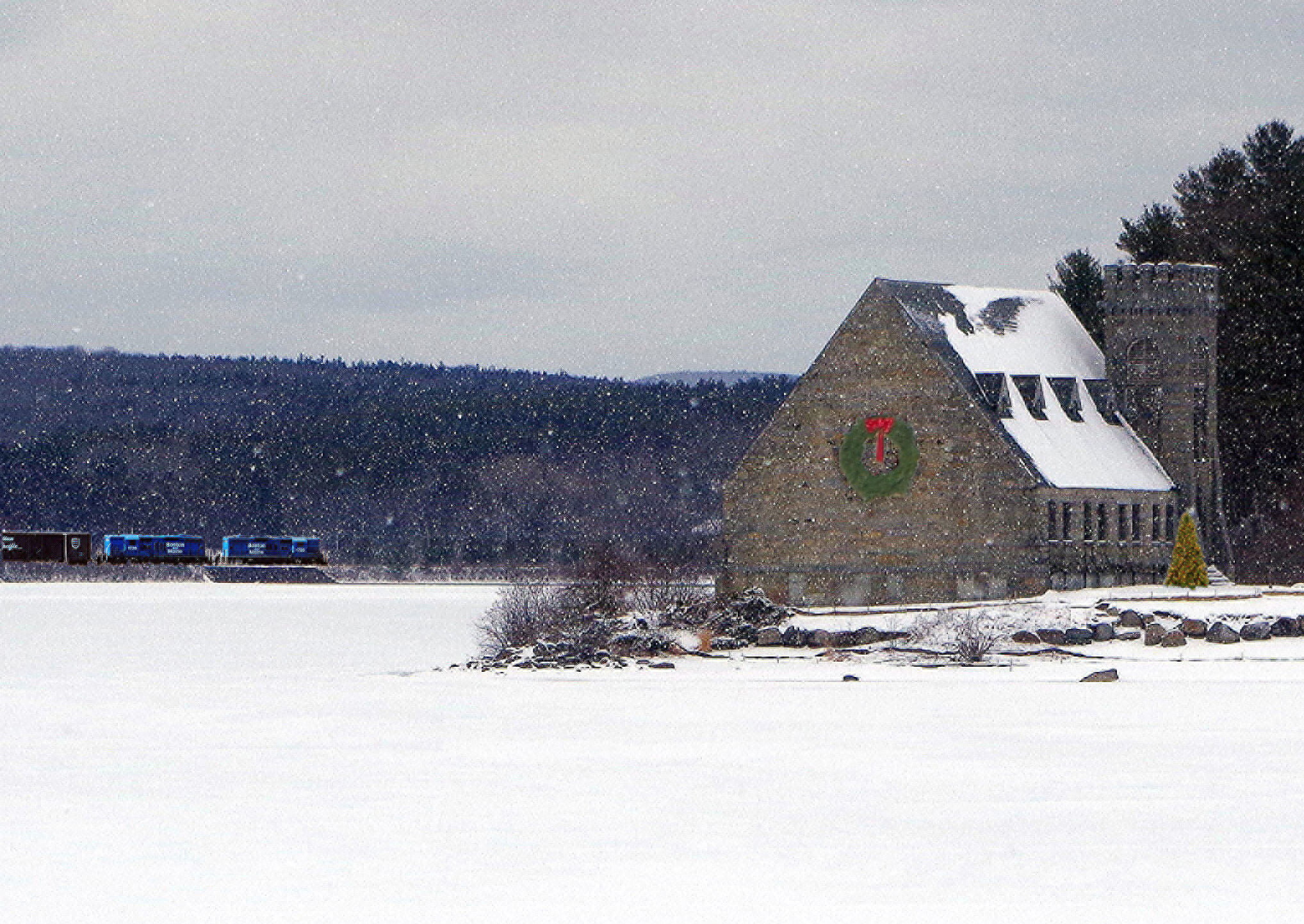 Boston & Maine @ West Boylston, Ma. Merry Christmas, Happy Hanukkah and Festivus for the rest of us! Photographed by Bruce Macdonald, February 10, 1984. Added to the photo archive by Bruce Macdonald, December 18, 2025. Railroad: Boston & Maine. | Bruce Macdonald's awards: |        |