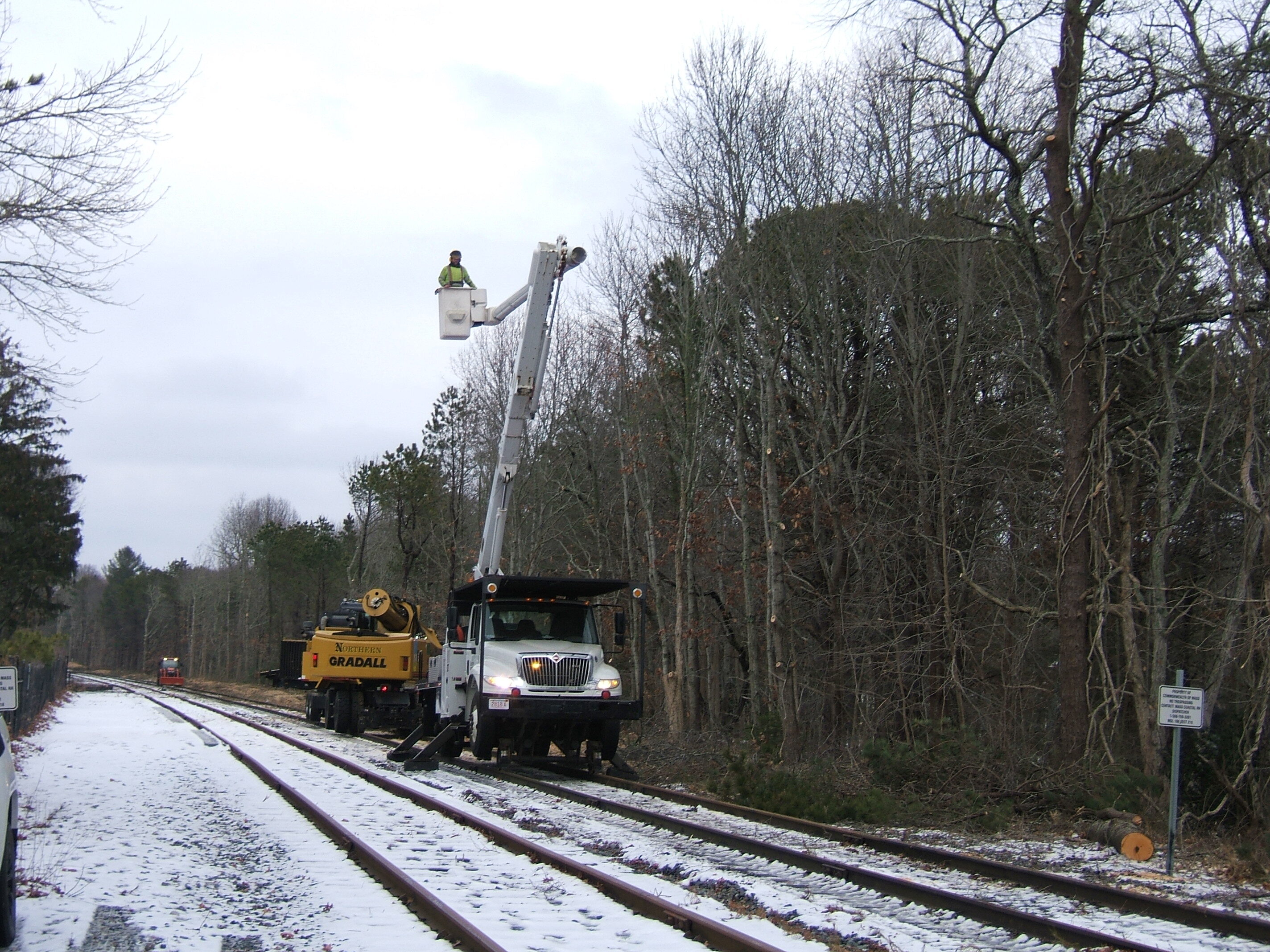 Heading for the finish lineNorthern Tree cutting back / chipping brush on the ROW along the Falmouth Secondary line siding in North Falmouth MA