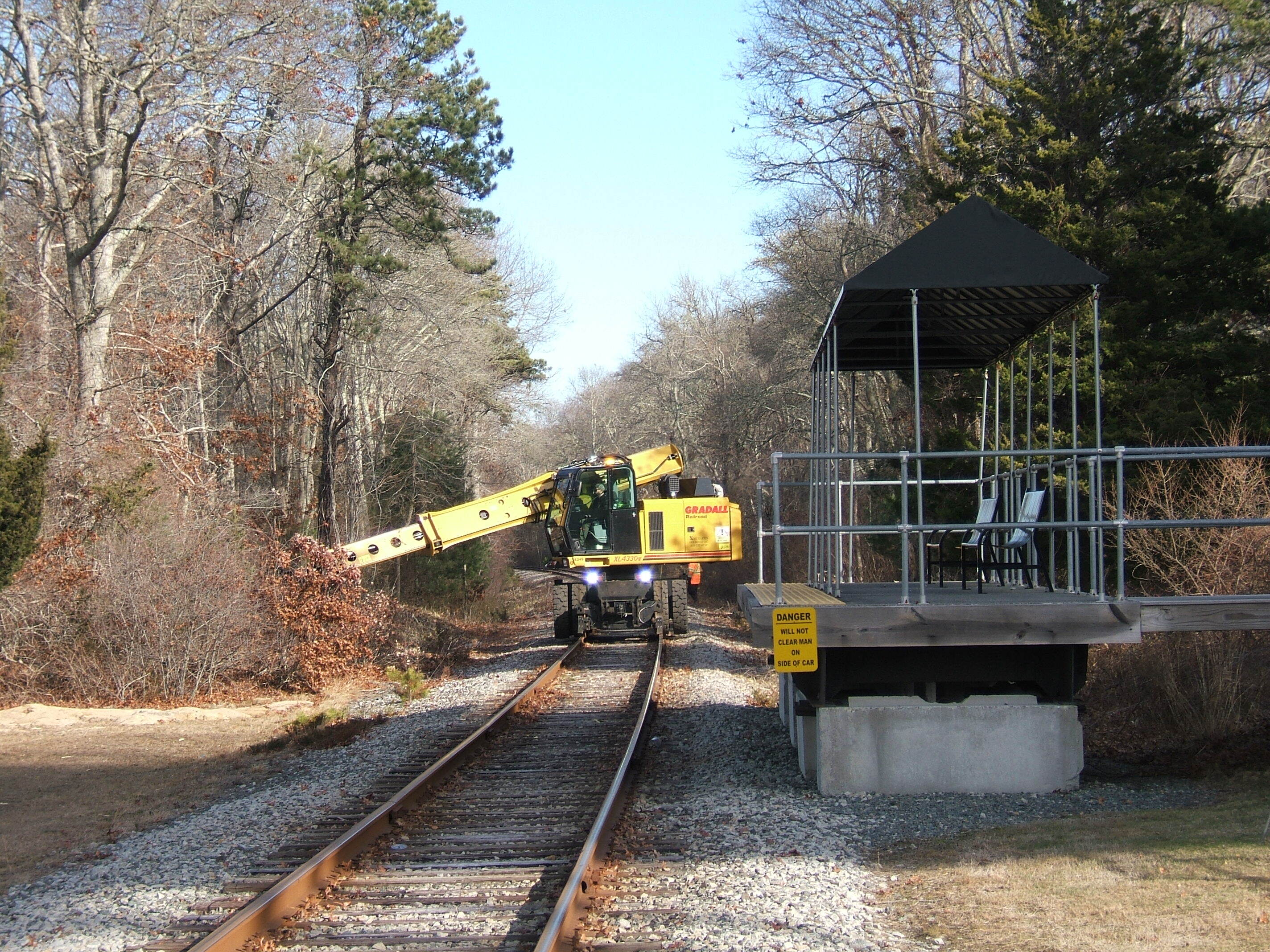 Cape Main line Bourne MABrush cutter working past the Cape Flyer Bourne Station at MP 56.37 under the Bourne Bridge