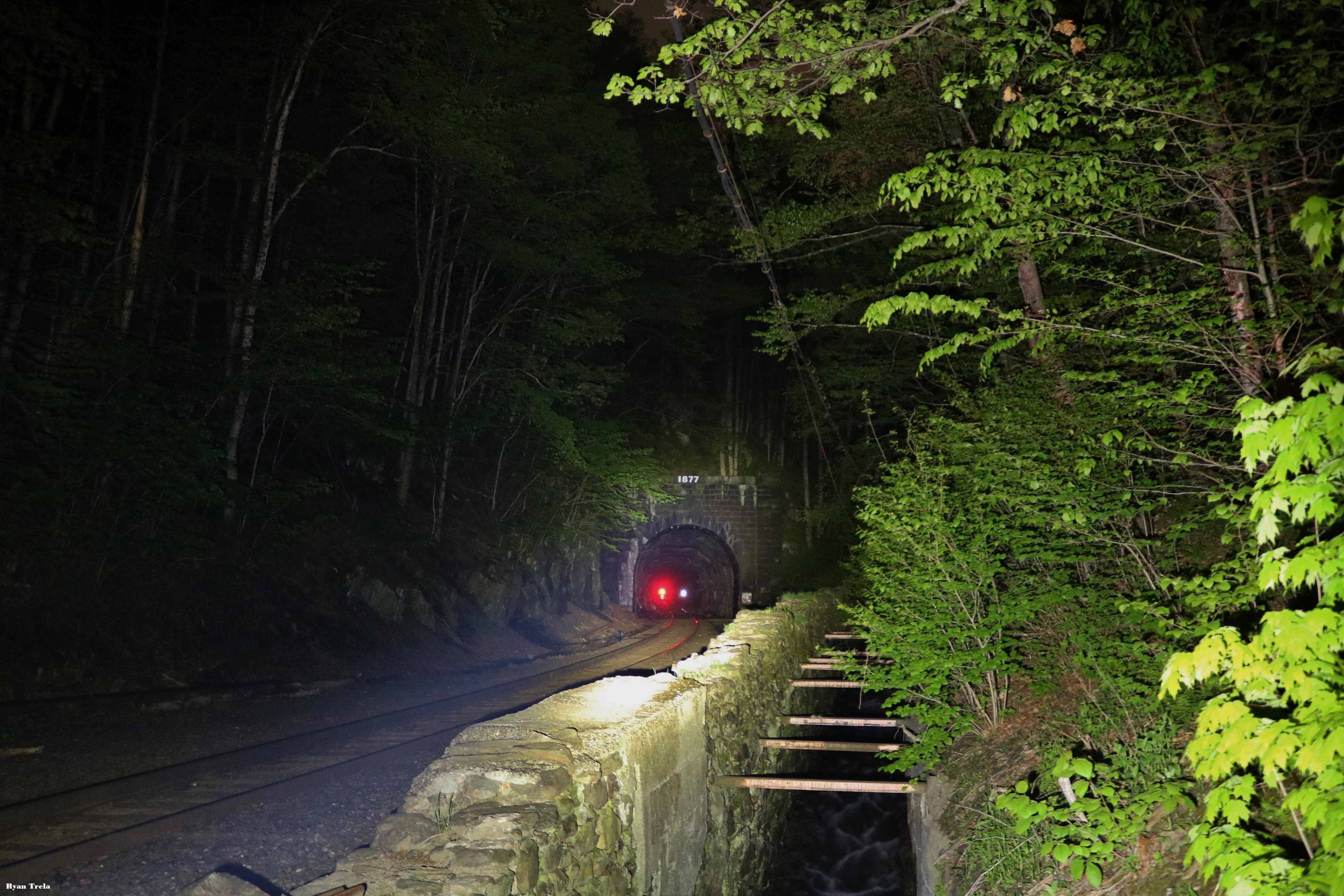 East portal of Hoosac Tunnel with a red signal lite inside