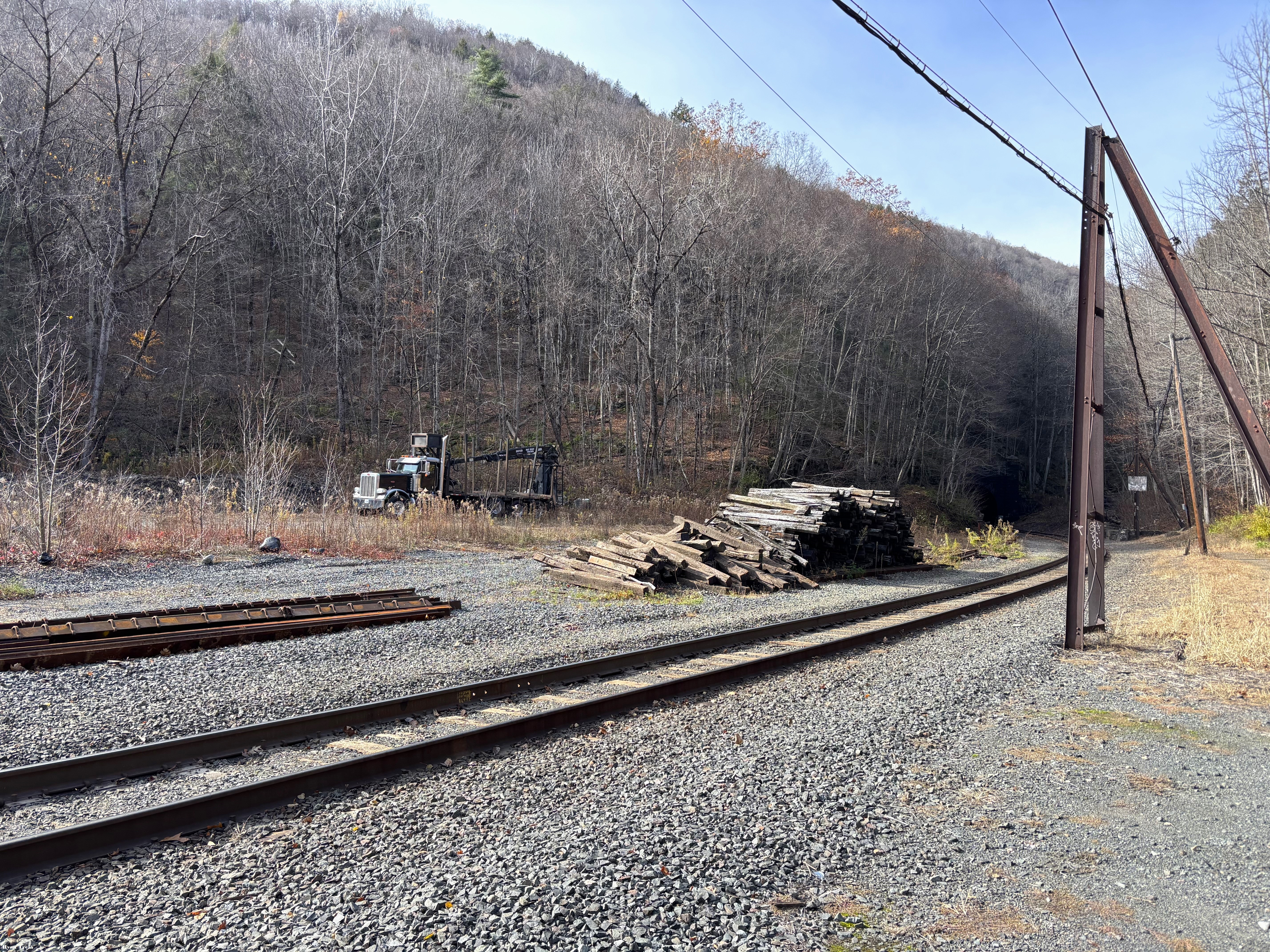 Tie cleanupThe pile of ties that has been sitting at the east portal of the Hoosac tunnel for years is final in the process of being removed.