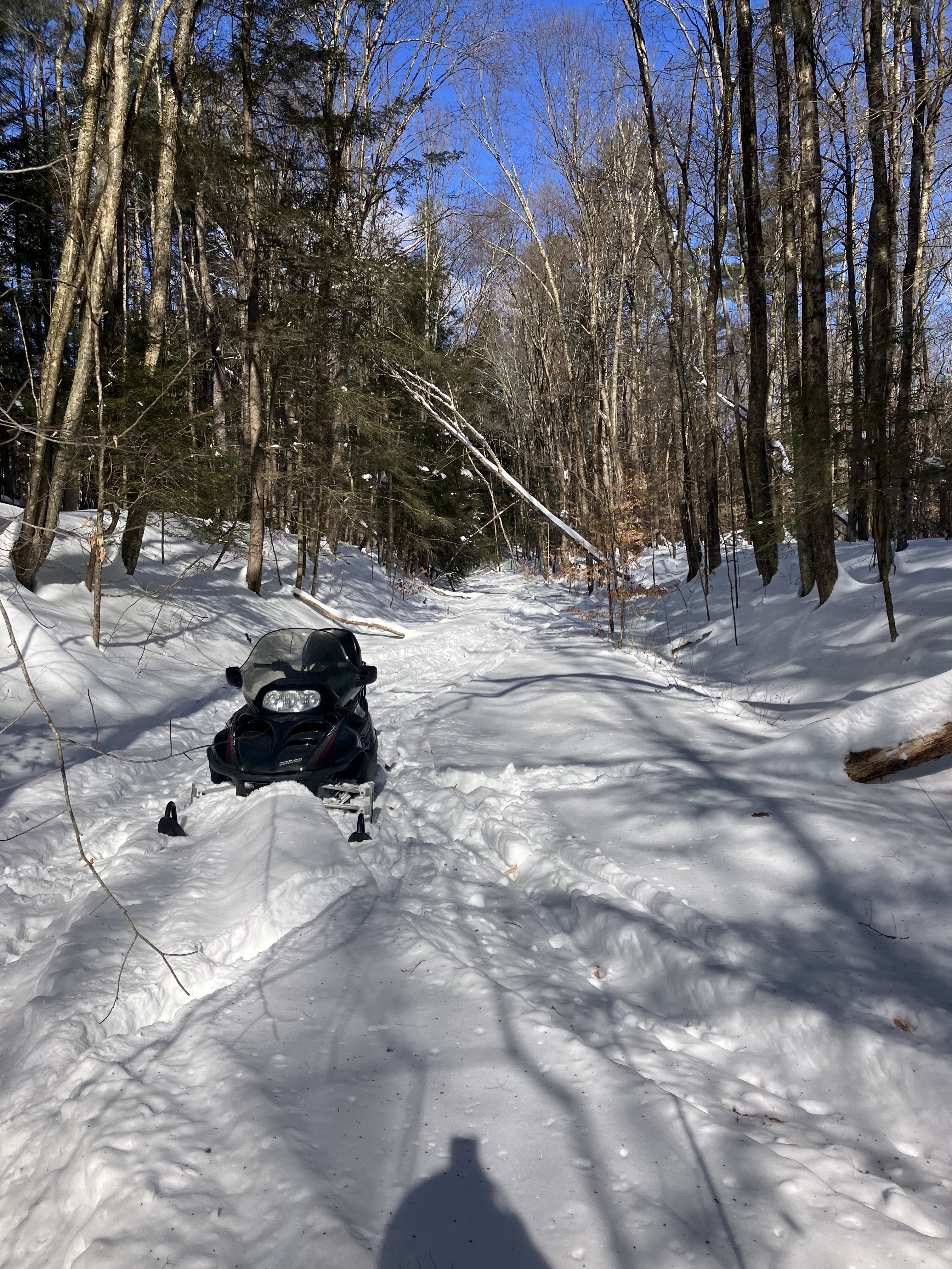 Corkscrew at Wyomanock CreekThere was no easy way to get the snowmobile across the Creek so we turned around at this point. View is along the grade looking north.