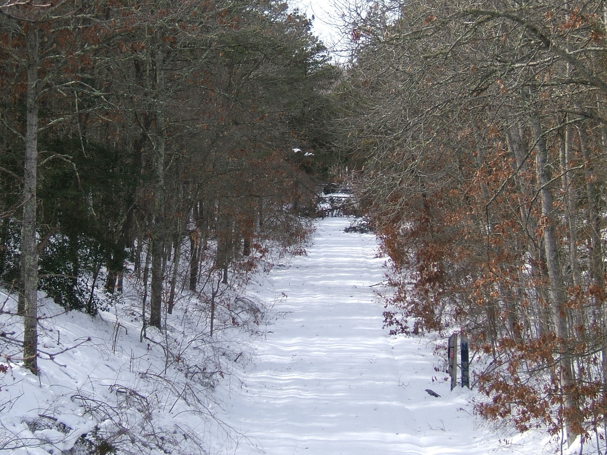 Photo from the Rte 151 overpass bridge looking south on the Otis Line showing trees down on the rails from last week's Blizzard. If the train crew currently headed out to Otis can't push through or doesn't have a chainsaw they may have to call in a tree crew to clear debris off the tracks