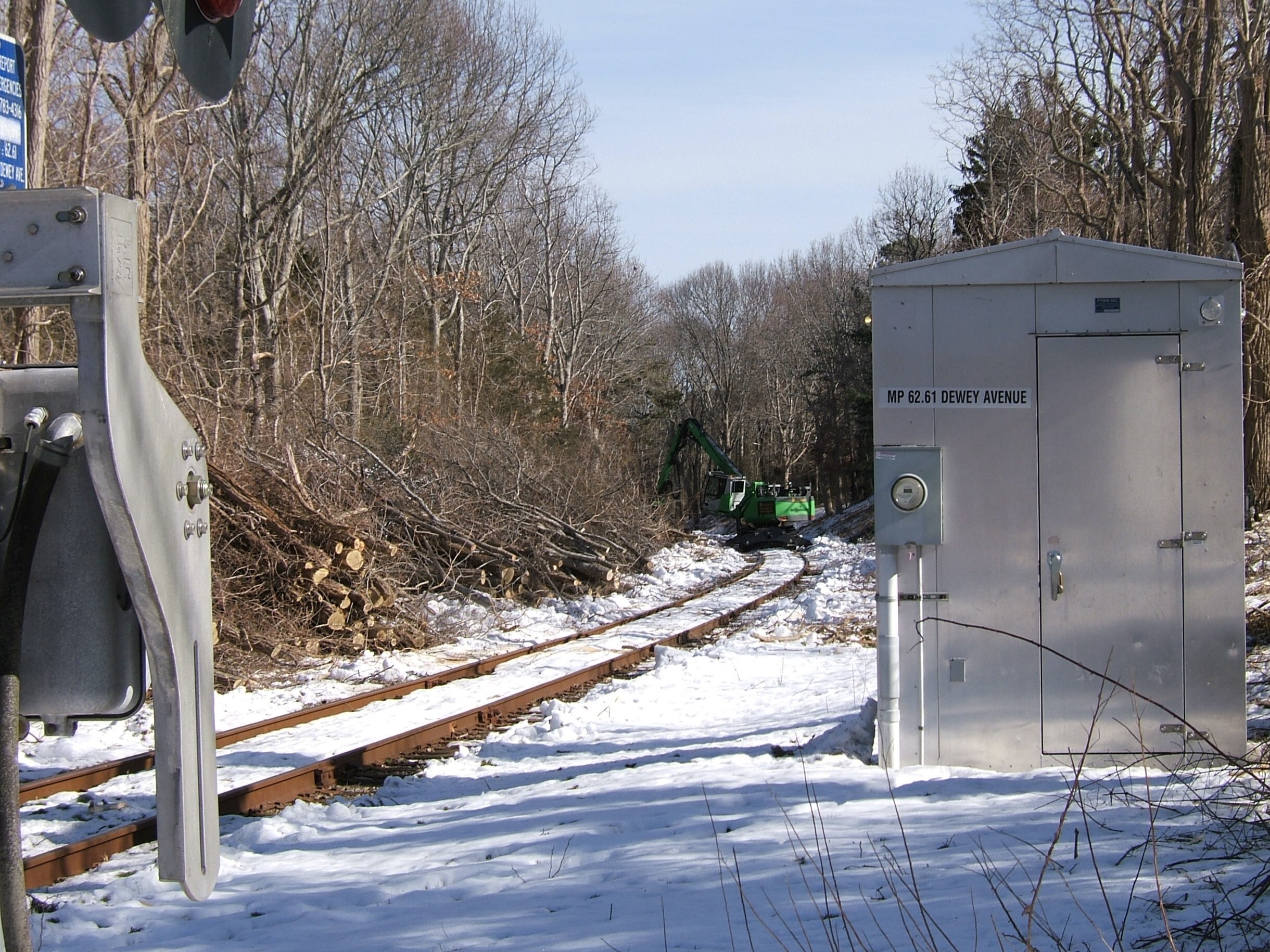 Northern Tree Service on the Cape Main lineTree cutter working just past the Dewey Ave RR crossing MP 62.61 in Sandwich MA