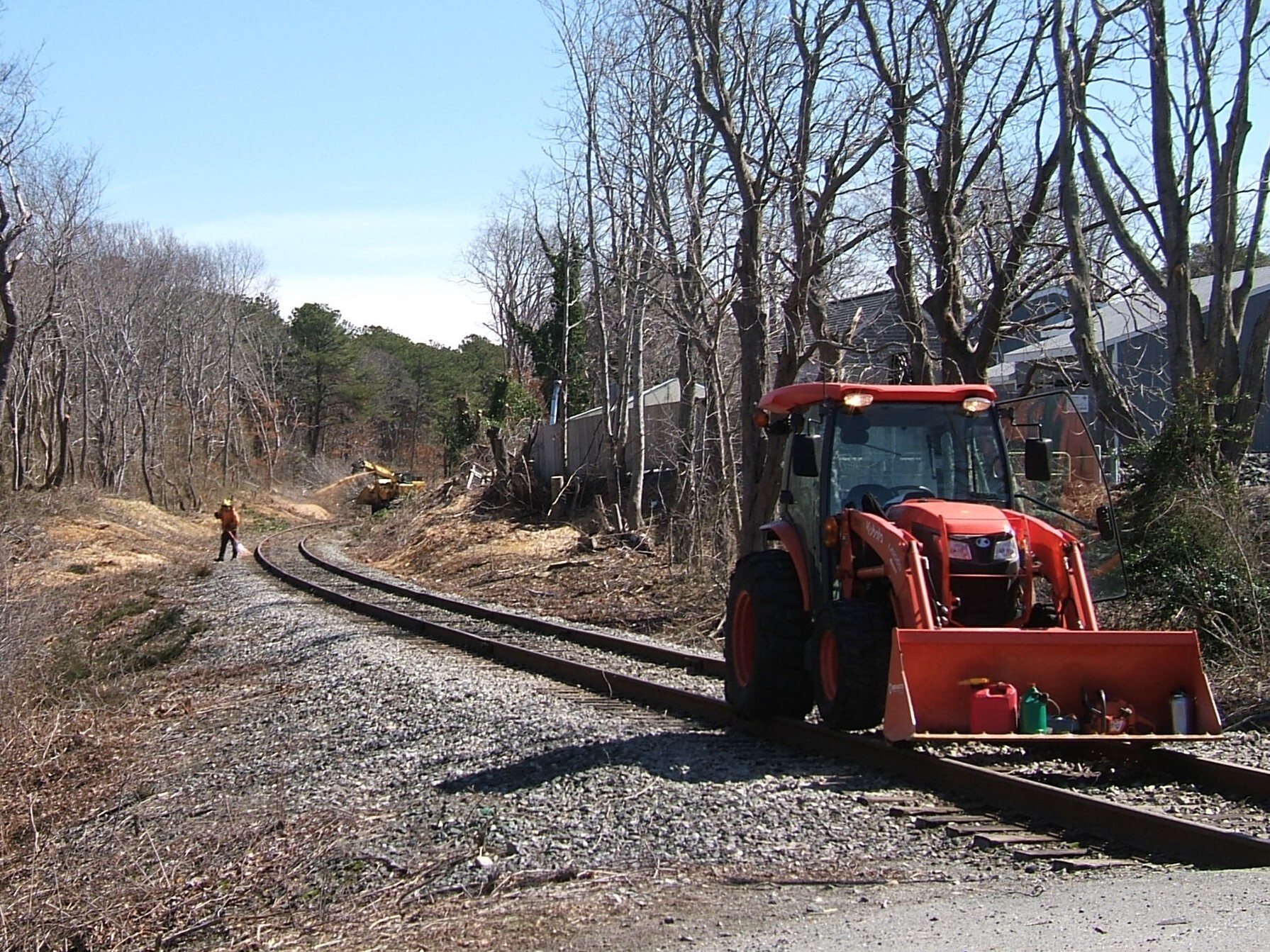 Cape Main Tree work continuesNorthern Tree Services Tree / Brush cutting moving past the Quaker Meetinghouse Rd RR crossing at MP 64.35 in Sandwich MA on the Cape Main line
