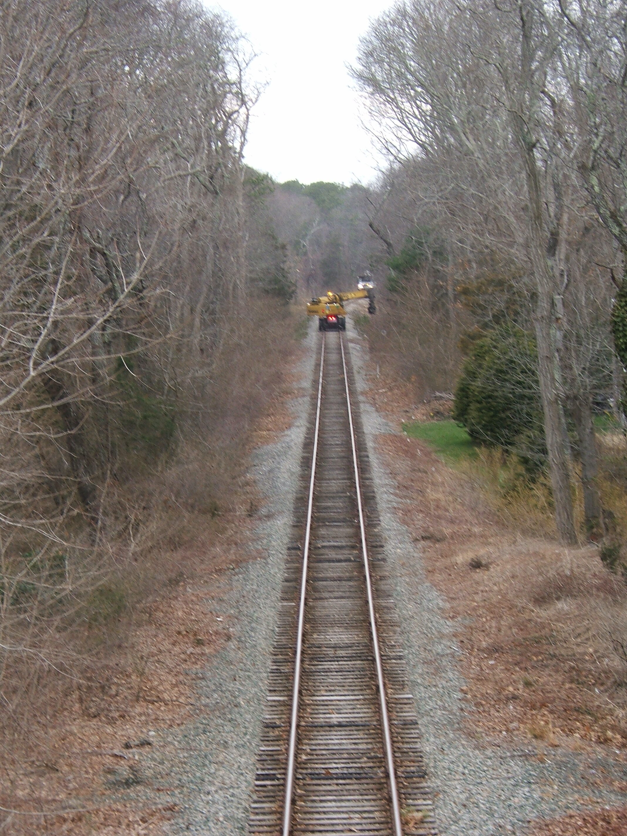 Northern Tree Service on the Cape Main lineApproaching Tree crew is photographed looking North from the Old County Road overhead bridge at MP 66.95 in Sandwich MA
